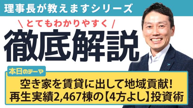空き家を賃貸に出して地域貢献!再生実績2,467棟の【4方よし】投資術