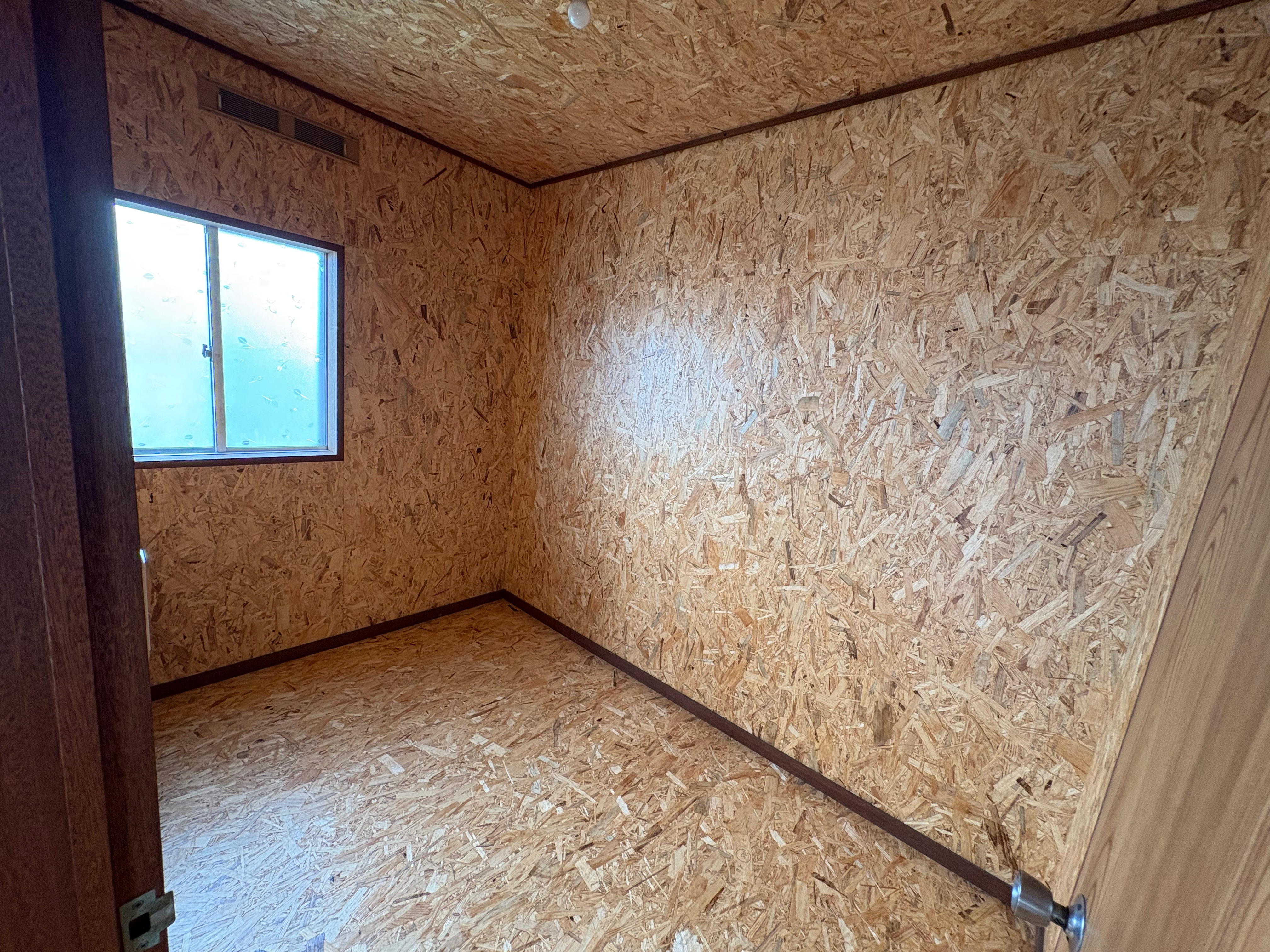 プランナー様のアイデアで3畳ほどの洋室を全面OSBボード貼りに。