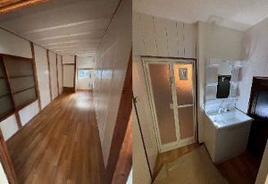 4DKの庭・車庫付き平屋。車庫を撤去し駐車スペースを2台分確保。薄暗い物置のような和室を明るい洋室化にして、洗面脱衣所を勝手口スペースを仕切り確保しました。